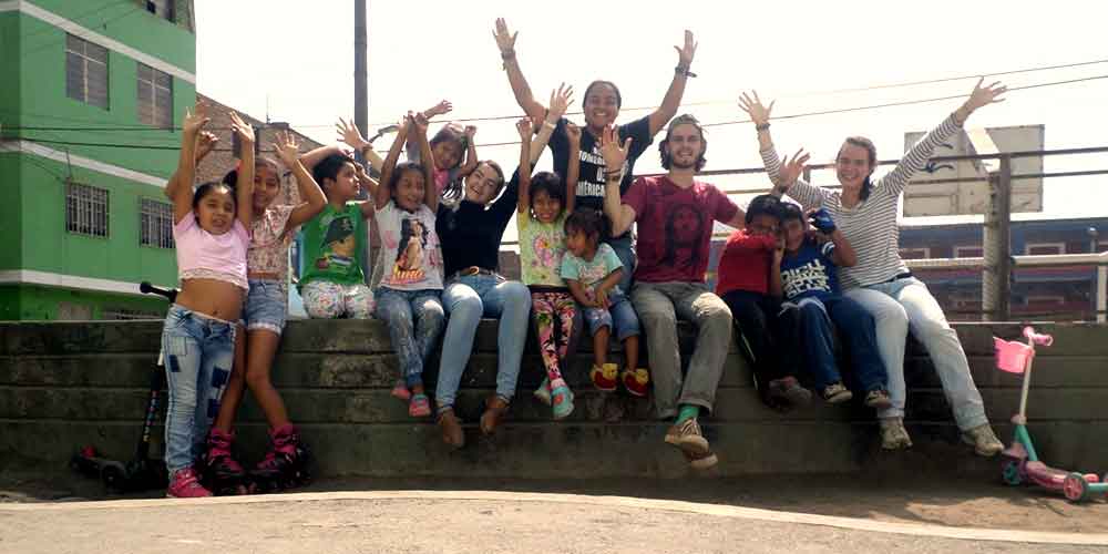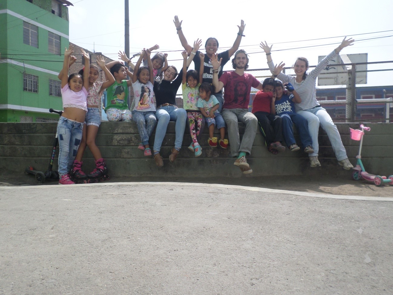 Świętujemy 23 urodziny Puntos Corazon (Domów Serca) w Barrios Altos. Favi w pierwszym rzędzie, obejmowana przez Andrzeja, a za nimi Seniora Trinidad.