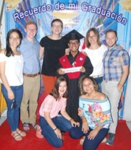A teraz chciałabym Wam przedstawić rodzinę, która jest bardzo zaprzyjaźniona z Domem Serca tutaj w Ekwadorze. To rodzina Diega. Diego jest młodym człowiekiem, który niedawno skończył studia i z tej też okazji była wielka fiesta. Pierwszego dnia zostaliśmy zaproszeni na imprezę rodzinną w domu siostry Diega, a drugiego dnia impreza odbywała się u nas w domu. Cały dzień przygotowywaliśmy z przyjaciółmi Diega wystrój. To jest cudowne, jak patrzę na przyjaciół, którzy troszczą się o przyjaciół w tak małych rzeczach jak przystrojenie domu, które – nota bene – trwało cały dzień, bo wszystko było robione ręcznie. Ale to, co jest najpiękniejsze z tego wszystkiego, to słowa, które usłyszeliśmy od mamy Diega, seniory Carloty. Poproszona o powiedzenie kilku słów, rozpoczęła od podziękowania Panu Bogu za dar życia Diega, za przyjaciół, za rodzinę. W naszą stronę skierowała słowa, które na zawsze ze mną zostaną. Powiedziała, że nie jesteśmy tylko przyjaciółmi, że jesteśmy rodziną, że każdy wolontariusz, który tu był, należy do rodziny i na zawsze jest w pamięci i sercu, dlatego też zostaliśmy zaproszeni na przyjęcie rodzinne. Jak wielkimi są serca tych ludzi, że potrafią przyjąć do swojej rodziny człowieka, który pochodzi z drugiego krańca świata i który jest tu na określony czas. Przy tej okazji chciałabym się z Wami podzielić tym, jak w Ekwadorze świętuje się urodziny i inne wielkie przyjęcia. Przygotowywana jest ściana z mnóstwem ozdób, przy której można zrobić zdjęcia, bo zdjęcia tutaj są bardzo ważnym elementem przyjęcia. W zasadzie całą imprezę rozpoczyna się od robienia zdjęć i moim zdaniem to całkiem rozsądne, bo w tym klimacie człowiek bardzo szybko zaczyna wyglądać niekorzystnie 😉 Stół, na którym znajduje się mnóstwo słodkości również jest pięknie przyozdobiony. To, z jaka troska i pieczołowitością są tutaj przygotowywane przyjęcia, zawsze mnie dotyka. I jest tu jeden zwyczaj, który szczególnie przypadł mi do gustu, a mianowicie „la muerda”. Polega to na tym, że solenizant ma za zadanie ugryźć tort. Zwykle kończy się to na tym, że osoba stojąca najbliżej solenizanta w tym pomaga i cała twarz solenizanta ląduje w tymże torcie. Jest też czas na kolację i tańce.
