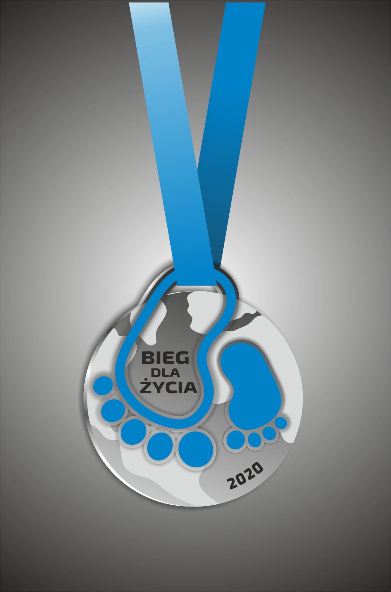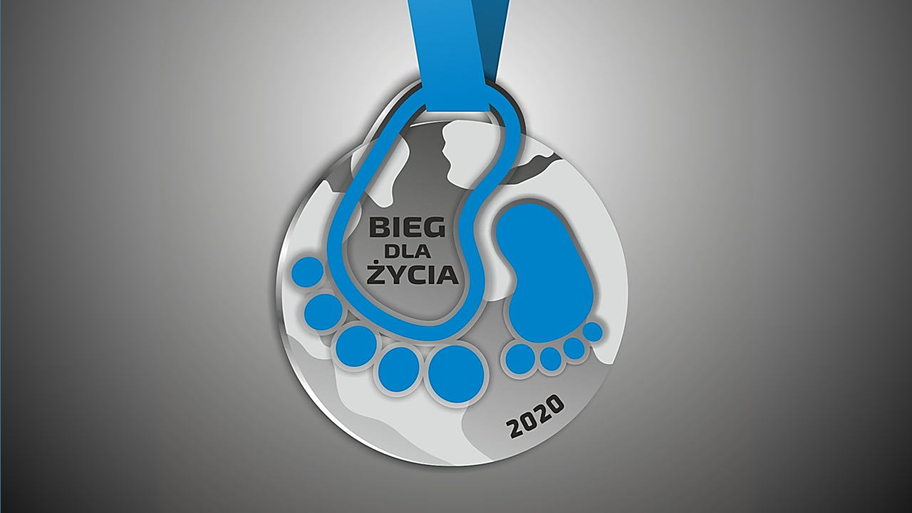 Medal ma także swoje znaczenie. Jak zawsze małe stópki które przemierzają cały świat niosąc nadzieję Życia, ale jednocześnie zachęcają do wdzięczności i szacunku dla Życia. Z drogiej strony tegoroczna edycja Biegu może odbyć się na całym świecie.